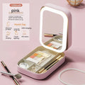 SMART MAKEUP CASE - this makeup mirror with storage lights has an adjustable brightness mode. There is a touch switch on the surface of the mirror, short press the touch sensor to turn on the light, and long-press the switch to adjust the brightness of the light. Adjust freely according to your needs, convenient and fast.